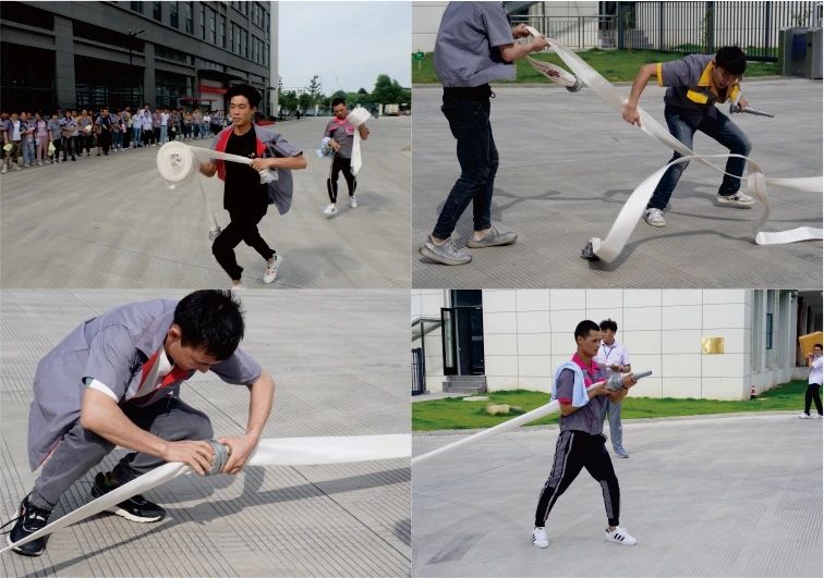 各小組成員在相互配合下使用消防栓連接水帶最終使水帶出水,此演練要求各小組以最快的時間完成水帶出水即是符合操作。使用消防水帶的操作過程中,需要默契和配合動作,各小組成員充分展現(xiàn)了團隊的凝聚力。