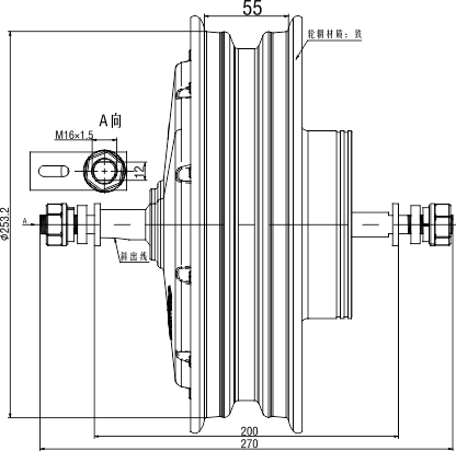電機(jī)軸螺紋尺寸: M16